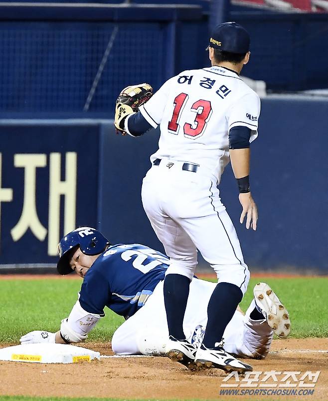 2021 KBO리그 두산 베어스와 NC 다이노스의 경기가 15일 잠실구장에서 열렸다. 3회초 1사 NC 양의지가 안타를 날린 뒤 3루를 향해 몸을 날리고 있다. 잠실=박재만 기자 pjm@sportschosun.com/2021.10.15/
