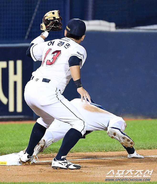 2021 KBO리그 두산 베어스와 NC 다이노스의 경기가 15일 잠실구장에서 열렸다. 3회초 1사 NC 양의지가 안타를 날린 뒤 3루를 향해 몸을 날리고 있다. 잠실=박재만 기자 pjm@sportschosun.com/2021.10.15/