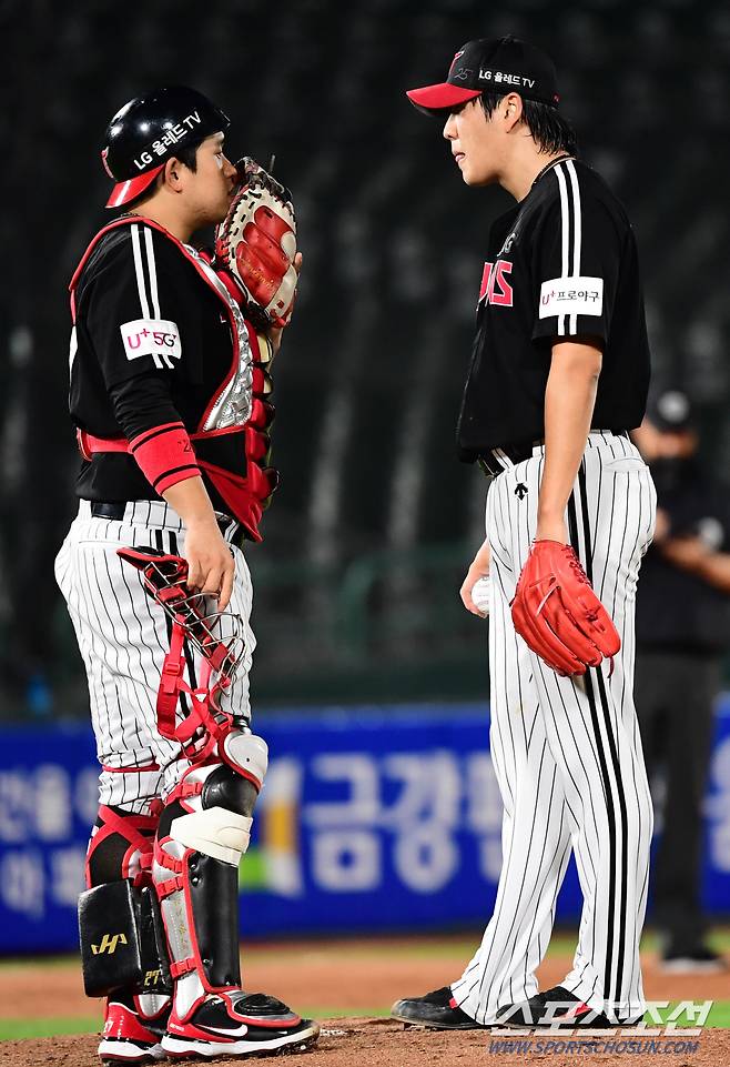 2021 KBO리그 롯데 자이언츠와 LG트윈스의 15일 부산사직야구장에서 열렸다. LG 선발 배재준이 3회말 1사 2루에서 전준우에게 안타를 내주고 물러나고 있다. 부산=최문영 기자 deer@sportschosun.com /2021.10.15/