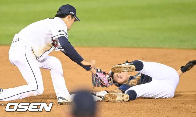 4회초 1사 1루 NC 김기환의 타석때 1루 주자 최정원이 도루 실패하고 있다. 2021.10.15 / soul1014@osen.co.kr