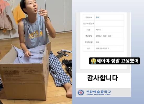 '박준형♥' 김지혜, 둘째 딸 선화예중 합격에 감격 "정말 고생했어"