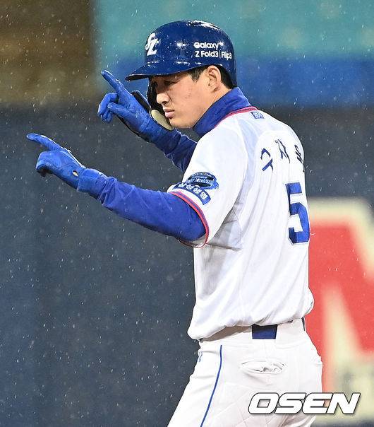 6회말 1사에서 삼성 구자욱이 좌중간 2루타를 치고 환호하고 있다. 2021.10.15 /sunday@osen.co.kr