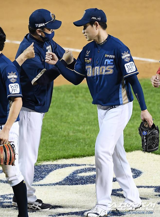 2021 KBO리그 두산 베어스와 NC 다이노스의 경기가 15일 잠실구장에서 열렸다. NC 이재학이 완봉승을 기록한 뒤 기뻐하고 있다. 잠실=박재만 기자 pjm@sportschosun.com/2021.10.15/