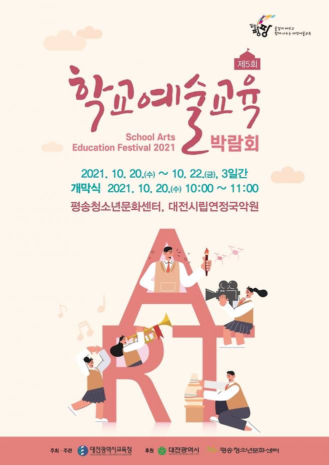 [대전=쿠키뉴스] 최문갑 기자 = 대전광역시교육청(교육감 설동호)은 ‘2021 제5회 학교예술교육박람회’를 20–22일 평송청소년문화센터와 대전시립연정국악원에서 연다(포스터).