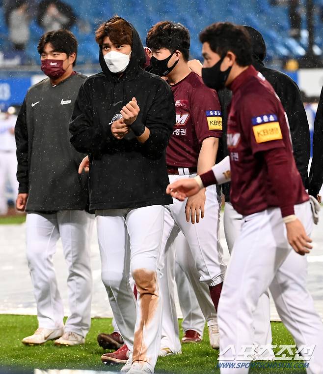 2021 KBO리그 키움 히어로즈와 삼성 라이온즈의 경기가 15일 대구 삼성라이온즈 파크에서 열렸다. 키움이 2-0, 6회 강우콜드게임 승을 거뒀다. 경기 종료 후 팬들에게 인사를 하는 키움 선수들의 모습. 대구=허상욱 기자 wook@sportschosun.com/2021.10.15/