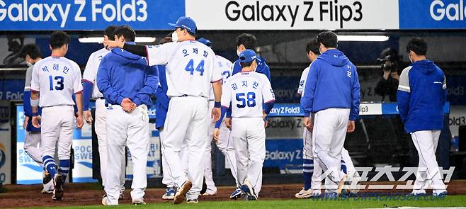 2021 KBO리그 키움 히어로즈와 삼성 라이온즈의 경기가 15일 대구 삼성라이온즈 파크에서 열렸다. 키움이 2-0, 6회 강우콜드게임 승을 거뒀다. 경기 종료 후 팬들에게 인사를 하는 삼성 선수들의 모습. 대구=허상욱 기자 wook@sportschosun.com/2021.10.15/