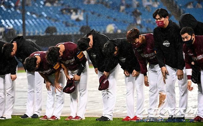 2021 KBO리그 키움 히어로즈와 삼성 라이온즈의 경기가 15일 대구 삼성라이온즈 파크에서 열렸다. 키움이 2-0, 6회 강우콜드게임 승을 거뒀다. 경기 종료 후 팬들에게 인사를 하는 키움 선수들의 모습. 대구=허상욱 기자 wook@sportschosun.com/2021.10.15/