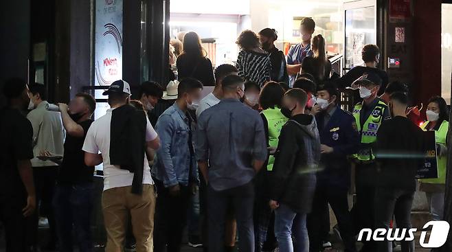 (서울=뉴스1) 임세영 기자 = 서울마포경찰서와 마포구청 관계자들이 15일 밤 서울 마포구 홍대 일대 외국인 밀집구역에서 코로나19 방역 수칙 위반(마스크 미착용, 3인 이상 집합금지, 음주소란 등)을 단속하고 있다. 2021.10.15/뉴스1