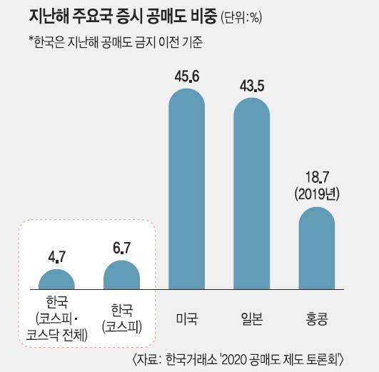 최근 국내 증시가 급락세를 보이고 야권 대선 주자들이 공매도(해당 주식을 보유하고 있지 않은 상태에서 주식을 빌려 매도 주문을 내는 것) 제도를 두고 갑론을박을 벌이면서 공매도 논란이 다시 촉발되고 있다. 5개월 전 제도 개선에도 일부 개미(개인) 투자자는 공매도 시장이 여전히 외국인·기관에 ‘기울어진 운동장’이라며 공매도 금지, 나아가 폐지를 요구하고 있다. 그러나 국내 주식이 정말 공매도 때문에 하락한 것일까. 과연 공매도를 없애는 게 답이 될 수 있을까.