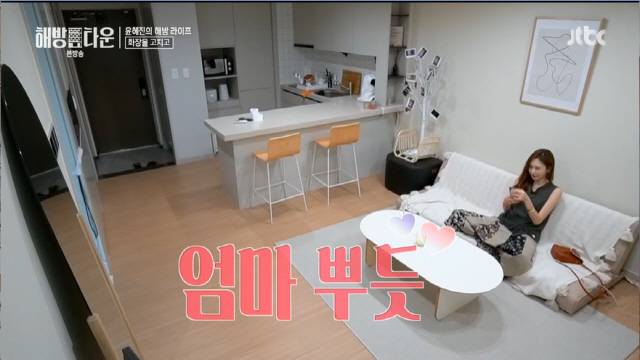 드디어 해방타운에 온 윤혜진은 집에서도 셀카를 끝없이 찍어댔다. 윤혜진은 딸 엄지온에게 전화해서 "엄마 어때?"라 물었고 지온이는 "나 예뻐"라 답했다. 하지만 곧 "엄마 예뻐. 화장이 다르다"며 "입술도 흐린 게 좋다"며 예리하게 알아봤다. 엄지온은 "엄마 서른 둘 같아"라 했고 윤혜진은 "언니라 불러"라고 좋아했다.