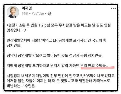 이재명 "우리 안의 수박들.." 페북, 이런 표현글 지운다