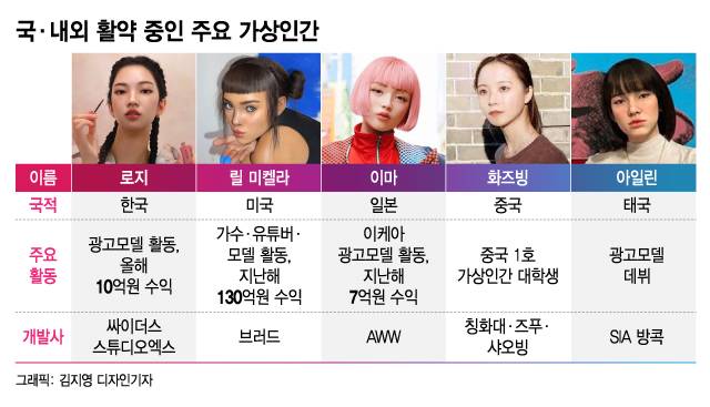 실제로 국내 가상인간 '로지'는 광고모델계의 블루칩으로 떠오르며 올해 10억원을 벌어들였다. 미국 '릴 미켈라', 일본 '이마', 중국 '화즈빙', 태국 '아일린' 등 전 세계적으로 가상인간이 열풍이다.