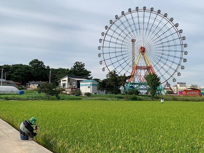 추석 연휴 전 당진행을 결정하게 한 건 바로 SNS에서 본 사진 때문이었다. 근래 본 일몰 중 가장 아름다웠다. 특히 레트로한 느낌이 물씬 풍기는 대관람차 앞으로 펼쳐지는 논뷰는 전 세계 어디에서도 볼 수 없는 거다.