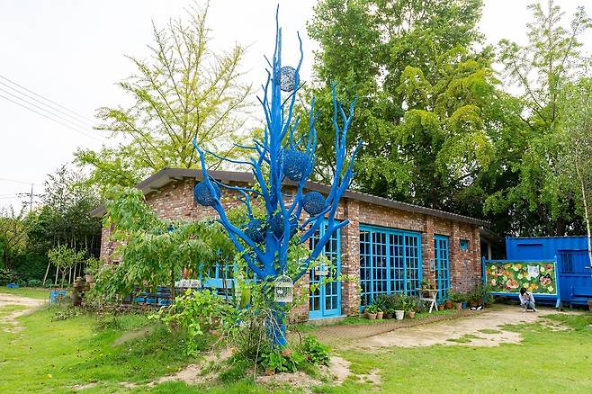 옛날 운동장이었던 야외전시장은 평소 자연학습장으로 활용된다. 파릇파릇 잔디 위에 야외 조각 및 설치 미술을 전시한다. 벤치에 앉아 쉬는 방문객이 있지만 보통 이곳은 고양이들의 차지다. 메인 전시관 뒤편에 위치한 ‘메종 드 아미’는 옛 학교 숙직실과 창고를 활용해 만든 복합문화공간이다. 야외전시장 가장 안쪽에 파란 창틀이 인상적인 카페 지베르니도 있다.