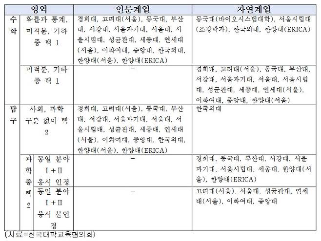 ▶2022에서는 수능에서 계열 구분이 없어졌다? 대학에서는 여전히 과목을 지정
