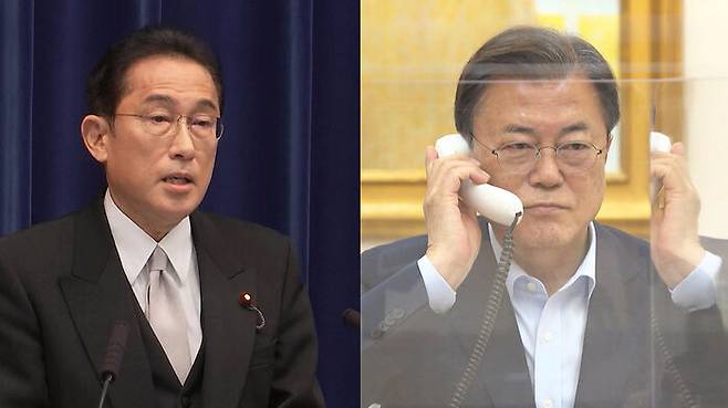 문재인 대통령과 기시다 후미오 일본 총리 사이의 첫 정상 전화 통화에 대해, 일본 언론은 징용 노동자 및 일본군 위안부 문제에서 평행선을 달렸다고 평가했습니다.