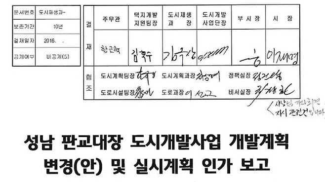 국민의힘 이종배 의원은, 성남시에서 제출받은 자료에 따르면 이재명 후보는 성남시장이었던 지난 2014∼2016년 대장동 개발사업 세부 내용이 담긴 공문에 최종 결재자로 10차례 서명했다고 밝혔습니다.