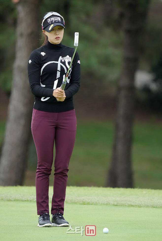 [이데일리 골프in(익산)=조원범 기자]16일 전북 익산시에 위치한 익산CC(파72.6569야드)에서 '동부건설 · 한국토지신탁 챔피언십'3라운드가 열렸다.유효주가 18번홀에서 경기를 하고 있다.