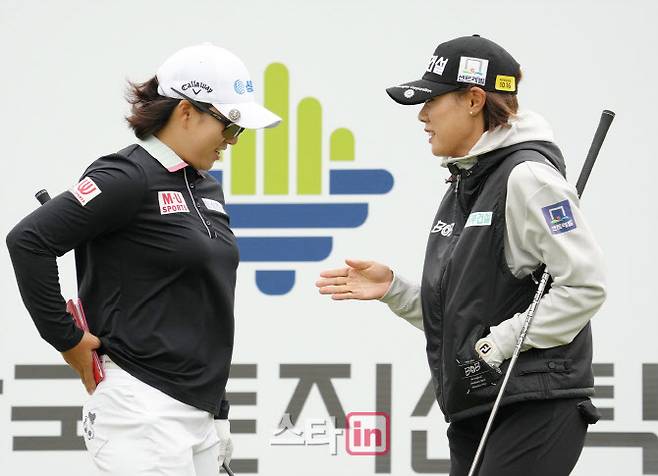 [이데일리 골프in(익산)=조원범 기자]16일 전북 익산시에 위치한 익산CC(파72.6569야드)에서 '동부건설 · 한국토지신탁 챔피언십'3라운드가 열렸다.김해림과 박주영이 10번홀에서 경기를 하고 있다.