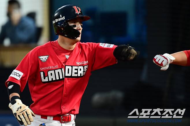 [포토] 동점 득점 올리는 SSG 최지훈