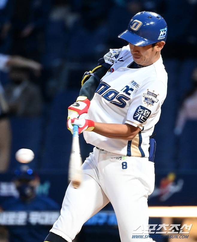 2021 KBO리그 LG 트윈스와 NC 다이노스의 경기가 16일 창원NC파크에서 열렸다. 3회말 NC 김기환이 2루타를 치고 있다. 창원=허상욱 기자 wook@sportschosun.com/2021.10.16/