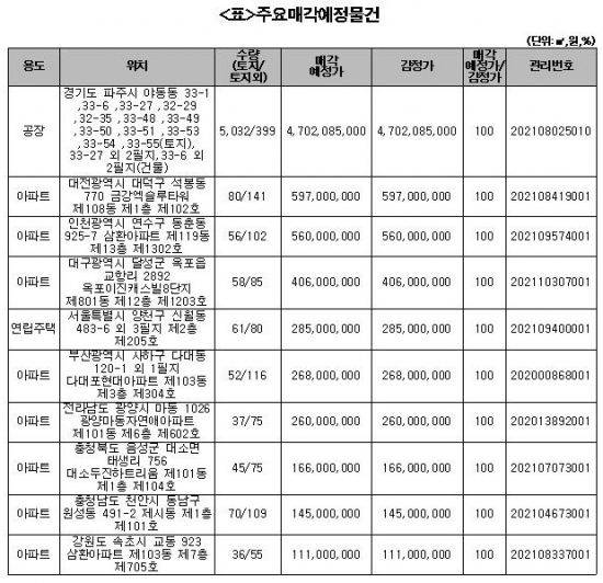 이번 공매에는 감정가의 70% 이하인 물건도 548건이나 포함돼 실수요자들은 관심을 가져볼 만하다.