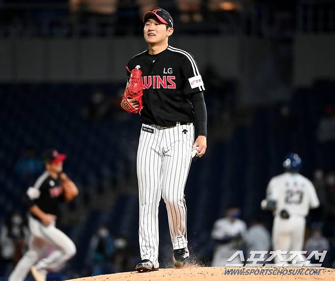 2021 KBO리그 LG 트윈스와 NC 다이노스의 경기가 16일 창원NC파크에서 열렸다. 4회말 수비를 무실점으로 마친 LG 임준형이 미소짓고 있다. 창원=허상욱 기자 wook@sportschosun.com/2021.10.16/