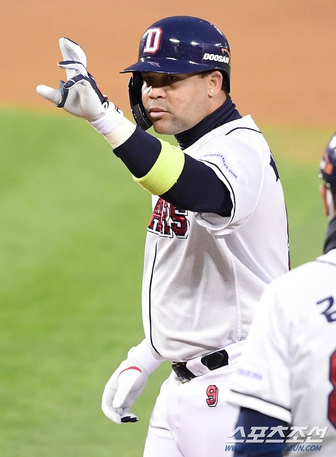 16일 서울 잠실야구장, KBO리그 KIA와 두산 경기. 3회말 1사 페르난데스가 안타를 치고 나가 기뻐하고 있다. 잠실=정재근 기자 cjg@sportschosun.com/2021.10.16/