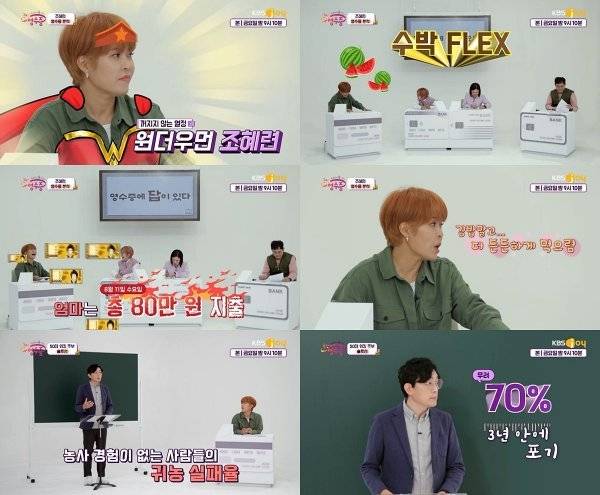 조혜련의 영수증에는 군대에서 휴가를 나온 아들 우주 군의 결제 내역도 있었는데, 엄마와 같이 수박을 사먹어 웃음을 안겼다. 또 조혜련은 "첫 휴가를 나오고 새사람이 된 줄 알았는데 며칠이 지나니까 다시 드러누워있더라. '그대로구나' 싶었다"고 털어놔 아들 둔 엄마들의 공감을 이끌어냈다.