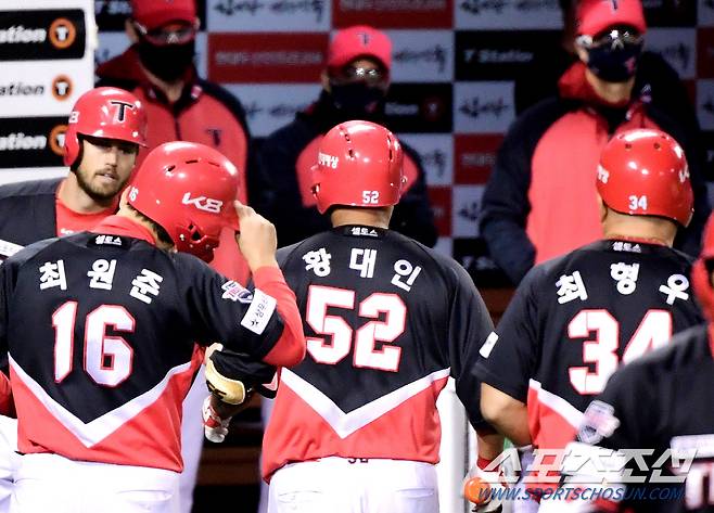 16일 서울 잠실야구장, KBO리그 KIA와 두산 경기. 5회초 2사 1, 3루 황대인이 3점 홈런을 친 후 위풍당당하게 들어오고 있다. 잠실=정재근 기자 cjg@sportschosun.com/2021.10.16/
