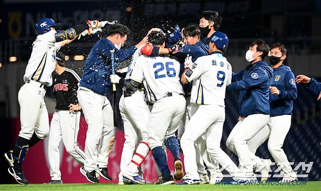 2021 KBO리그 LG 트윈스와 NC 다이노스의 경기가 16일 창원NC파크에서 열렸다. 9회말 1사 2루 NC 노진혁이 끝내기 안타를 치고 기쁨을 나누고 있다. 창원=허상욱 기자 wook@sportschosun.com/2021.10.16/
