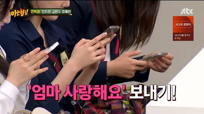 세 사람의 '엄마 부심'이 과열되자 서장훈은 "엄마들에게 '엄마 사랑해요' 문자를 보내서 가장 답장 빨리 오는 사람이 우승"이라고 즉석 게임을 제안했다.