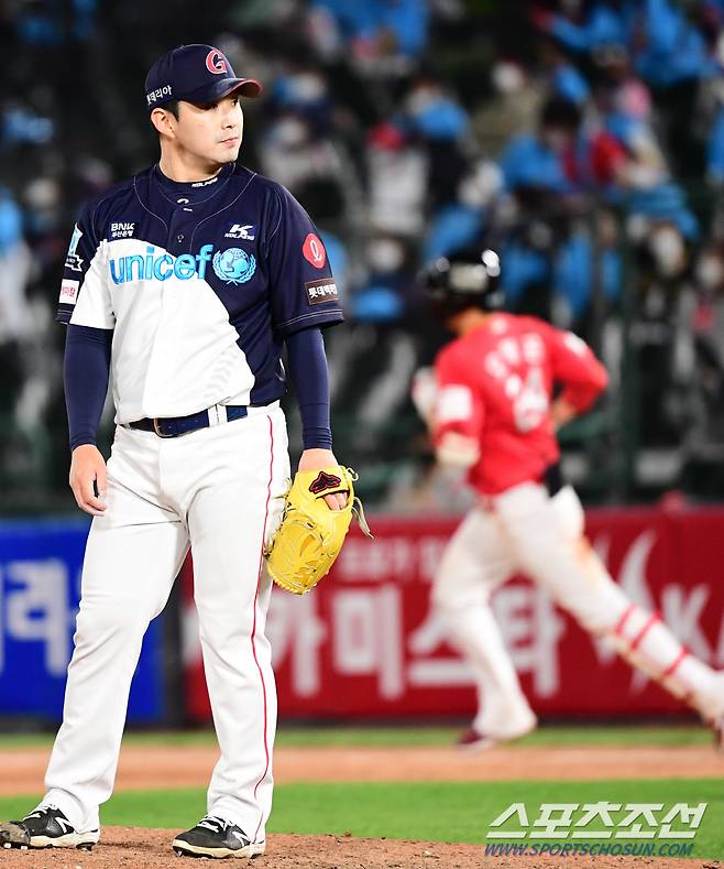2021 KBO리그 롯데 자이언츠와 SSG랜더스의 16일 부산사직야구장에서 열렸다. 롯데 투수 최영환이 9회초 SSG 오태곤에게 투런포를 허용하고 있다. 부산=최문영 기자 deer@sportschosun.com /2021.10.16/