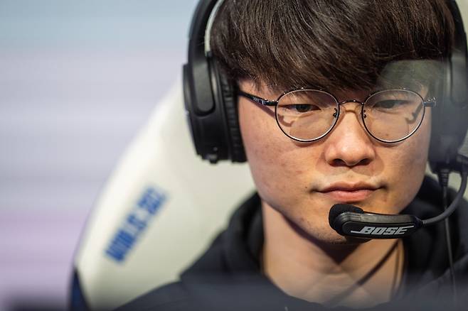 16일 아이슬란드 레이캬비크 뢰이가르달스회들 실내 경기장에서 진행된 '2021 리그 오브 레전드 월드 챔피언십(롤드컵)' 그룹 스테이지 B조 2라운드 2경기에서 T1이 100 씨브즈(100T)를 제압하고 세 번째 승리를 신고했다.