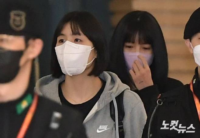 `학교폭력·비밀결혼' 등 각종 의혹과 논란이 휩싸인 배구 선수 이재영, 이다영 선수가 16일 오후 인천국제공항을 통해 그리스 테살로니키로 출국하고 있다.