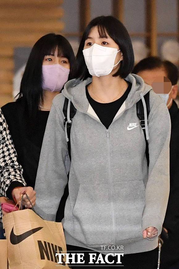 [더팩트ㅣ인천국제공항=남용희 기자] '학폭 논란'과 '비밀 결혼' 등으로 이슈의 중심에 선 쌍둥이 배구 선수 이재영·이다영(25) 자매가 16일 오후 인천국제공항을 통해 그리스로 출국하고 있다.