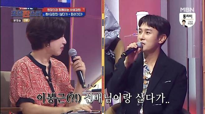 김동완은 그런 박미선에게 "이봉근 선배님이랑 살다가"라고 말실수했고, 박미선은 "이봉근 선생님이요? 죄송하지만 전 이봉원 씨랑 삽니다. 저기요. 큰일 날 소리를. 무슨 막장드라마다. 이봉근 씨랑 살면 어떻게 되는 거냐"고 응수해 웃음을 자아냈다.