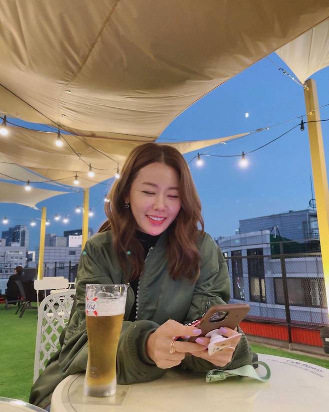 공개된 사진 속 안선영은 루프탑에서 야경을 즐기며 맥주를 마시고 있는 모습이다. 안선영은 카키 컬러의 재킷으로 힙한 패션을 완성했다.
