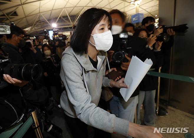 취재진 피해 출국장으로 향하는 이재영