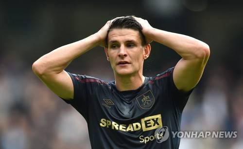 epa09527152 Ashley Westwood of Burnley reacts during the English Premier League soccer match between Manchester City and Burnley in Manchester, Britain, 16 October 2021. EPA/PETER POWELL EDITORIAL USE ONLY. No use with unauthorized audio, video, data, fixture lists, club/league logos or 'live' services. Online in-match use limited to 120 images, no video emulation. No use in betting, games or single club/league/player publications