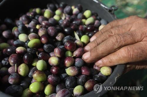 epa09527319 Palestinian farmer collects olive at their Olive field on the outskirts of the West Bank village of Al Sawiya, near the west bank city of Nablus, 16 October 2020. Regional farmers are harvesting their olives this year from 15 October until 15 November. According to figures issued by the United Nations some 80,000 Palestinian families earn their income from growing olives in plantations which reportedly occupy about 48 percent of the agricultural land in the West Bank and Gaza strip. About 93 percent of the olive harvest is pressed to oil with the rest being used in soap production. EPA/ALAA BADARNEH