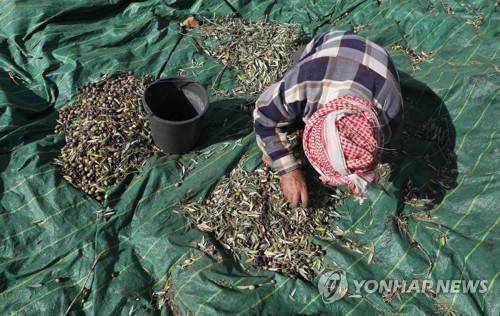 epa09527324 Palestinian farmer collects olive at their Olive field on the outskirts of the West Bank village of Al Sawiya, near the west bank city of Nablus, 16 October 2020. Regional farmers are harvesting their olives this year from 15 October until 15 November. According to figures issued by the United Nations some 80,000 Palestinian families earn their income from growing olives in plantations which reportedly occupy about 48 percent of the agricultural land in the West Bank and Gaza strip. About 93 percent of the olive harvest is pressed to oil with the rest being used in soap production. EPA/ALAA BADARNEH