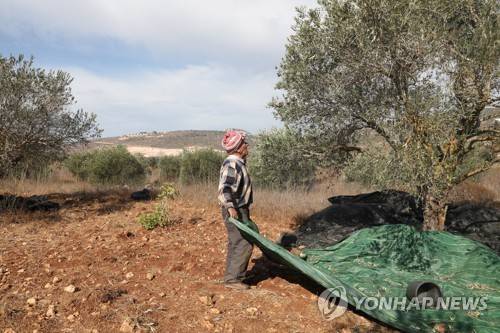 epa09527340 Palestinian farmer collects olive at their Olive field on the outskirts of the West Bank village of Al Sawiya, near the west bank city of Nablus, 16 October 2021. Regional farmers are harvesting their olives this year from 15 October until 15 November. According to figures issued by the United Nations some 80,000 Palestinian families earn their income from growing olives in plantations which reportedly occupy about 48 percent of the agricultural land in the West Bank and Gaza strip. About 93 percent of the olive harvest is pressed to oil with the rest being used in soap production. EPA/ALAA BADARNEH