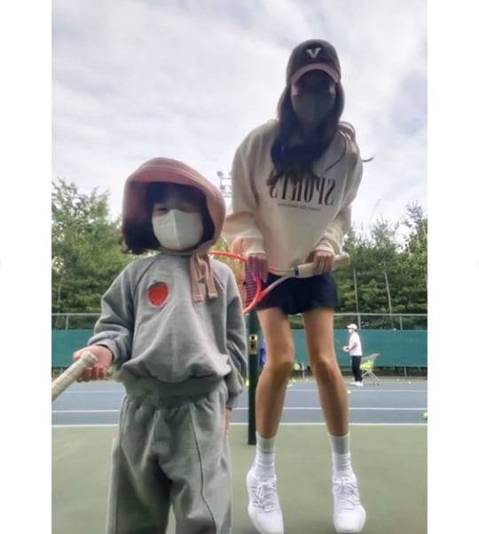 소유진♥백종원, 붕어빵 딸과 테니스 "주말 테니스 따라나선 꼬맹이" [TEN★]