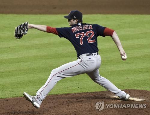 epa09527976 Boston Red Sox relief pitcher Garrett Whitlock throws in the seventh inning of game two of the MLB American League Championship Series between the Boston Red Sox and the Houston Astros at Minute Maid Park in Houston, Texas, USA, 16 October 2021. EPA/KEN MURRAY