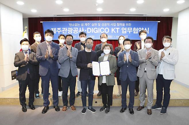 KT는 '위드코로나' 시대를 맞아 안전하고 새로운 여행 플랫폼 개발 협력을 위해 제주관광공사와 업무협약식을 맺고, 제주특별자치도제주관광공사와 공동으로 '탄소없는섬 제주 여행' 활성화를 위한 '디지코캠핑 인 제주(DIGICO캠핑 in Jeju)'를 진행했다고 17일 밝혔다.