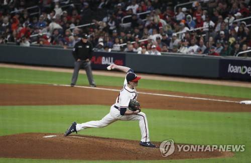 epa09528026 Atlanta Braves pitcher Max Fried throws against the Los Angeles Dodgers in the top of the fourth inning of game 1 of the MLB National League Championship Series playoff baseball game between the Los Angeles Dodgers and the Atlanta Braves at Truist Park in Atlanta, Georgia, USA, 16 October 2021. EPA/BRANDEN CAMP