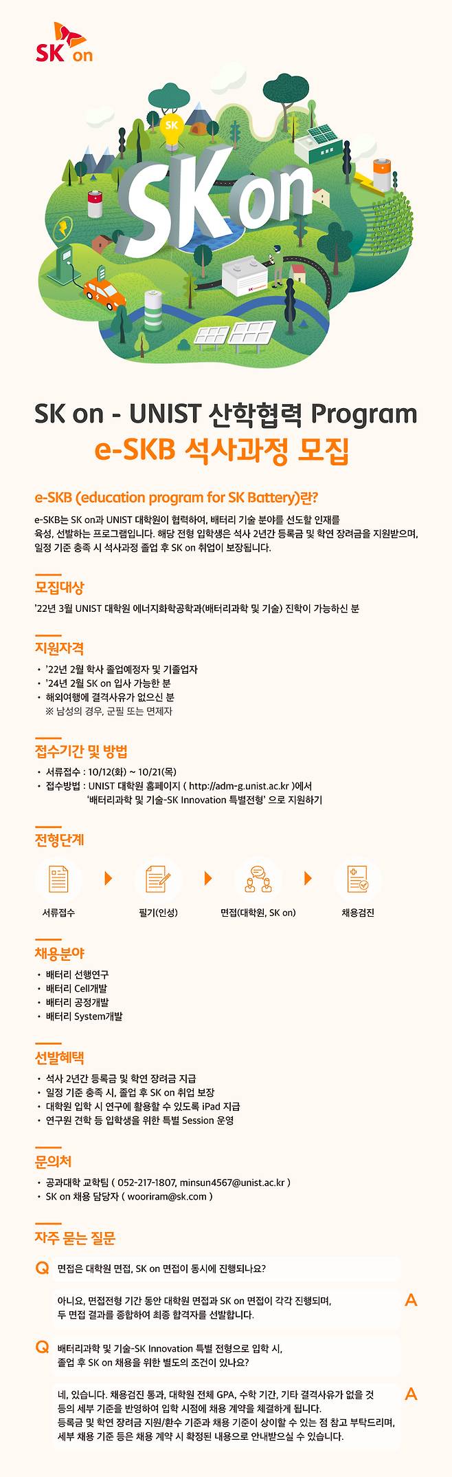 SK온, 배터리 인재 양성..UNIST 석사과정 특별전형 모집