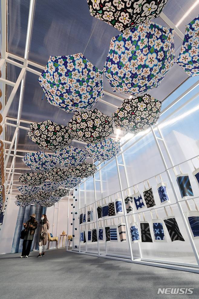 [서울=뉴시스] 배훈식 기자 = 2021년 제7회 궁중문화축전이 열린 17일 오전 서울 종로구 경복궁을 찾은 시민들이 전시물 관람을 하고 있다. 2021.10.17. dahora83@newsis.com