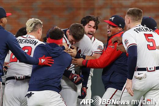 [레일리와 애틀랜타 선수들. 사진 = AFPBBENEWS]- ⓒ마이데일리(www.mydaily.co.kr). 무단전재&재배포 금지 -